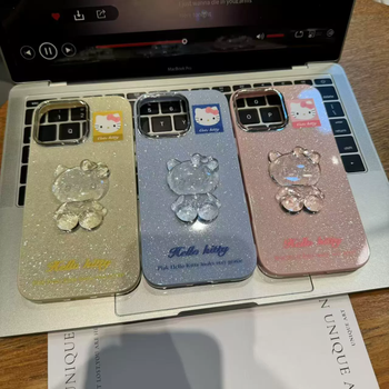 צבע אבקת קריקטורה במקרה טלפון קריסטל kt חתול עבור iphone 15 כיסוי הגנה promax