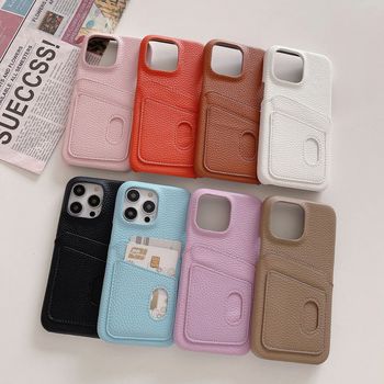 เคสโทรศัพท์ที่ใส่บัตรลายลิ้นจี่สำหรับ iPhone 16 17 PRO MAX กรอบป้องกันสายแขวน